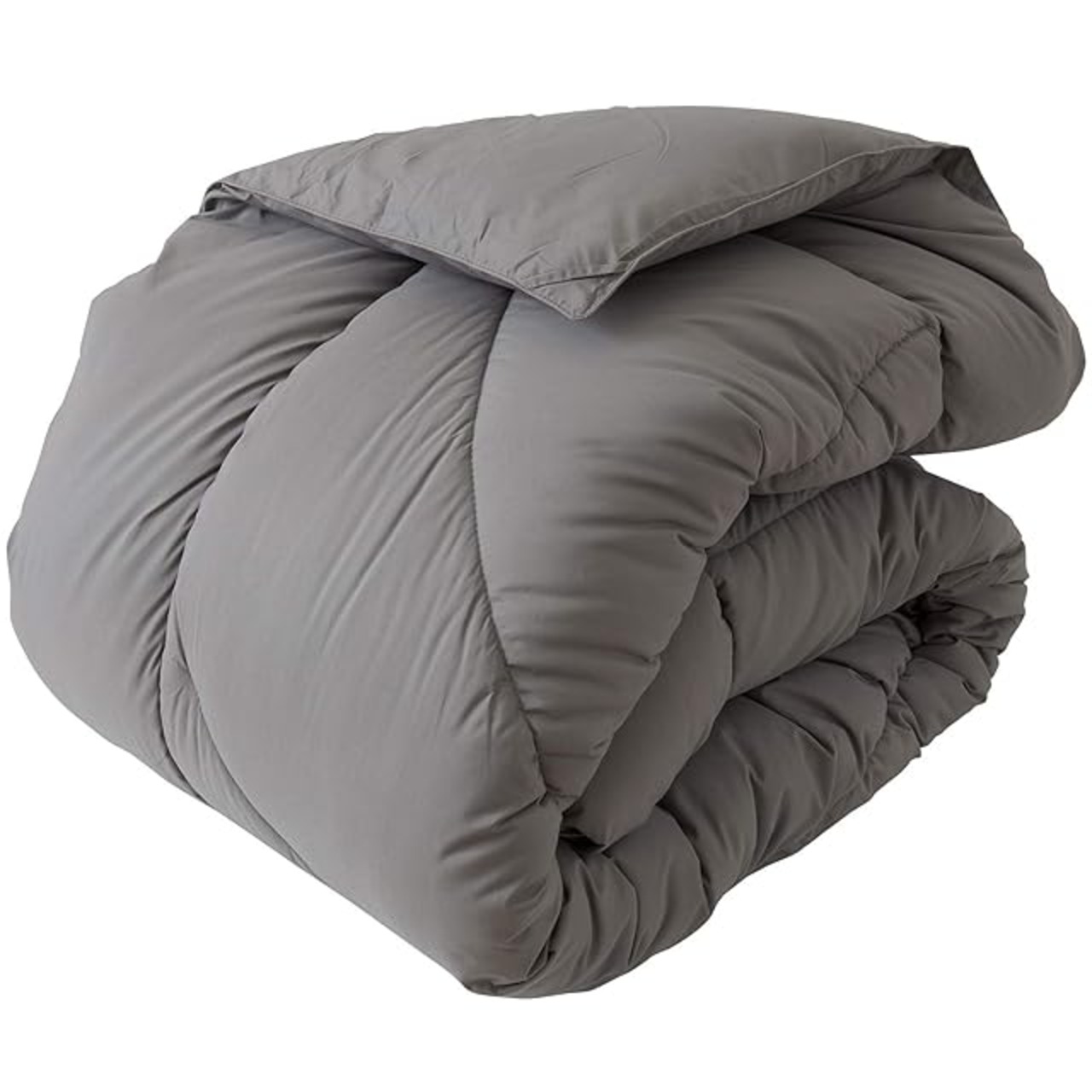 【種類】AQUA×帝人 快適清潔シリーズ やわらかフィット洗える掛け布団 / 【素材】[側地]ポリエステル100% [中綿]ポリエステル100%(マイティトップ Ⅱ 100%使用) / 【カラー】グレー/【サイズ】ダブル (190×210cm)/ 【企画・製造】日本で企画され、中国で製造されたものです