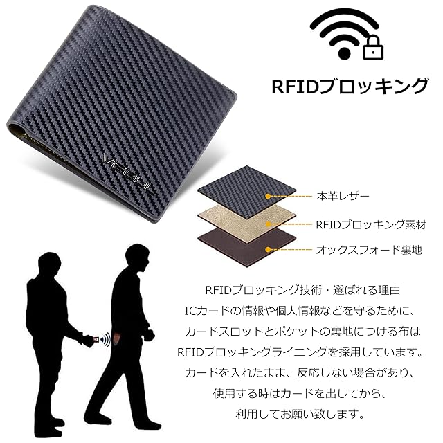 【RFIDブロッキング技術・選ばれる理由】ICカードの情報や個人情報などを守るために、カードスロットとポケットの裏地につける布はRFIDブロッキングライニングを採用しています。カードを入れたまま、反応しない場合があり、使用する時はカードを出してから、利用してお願い致します。