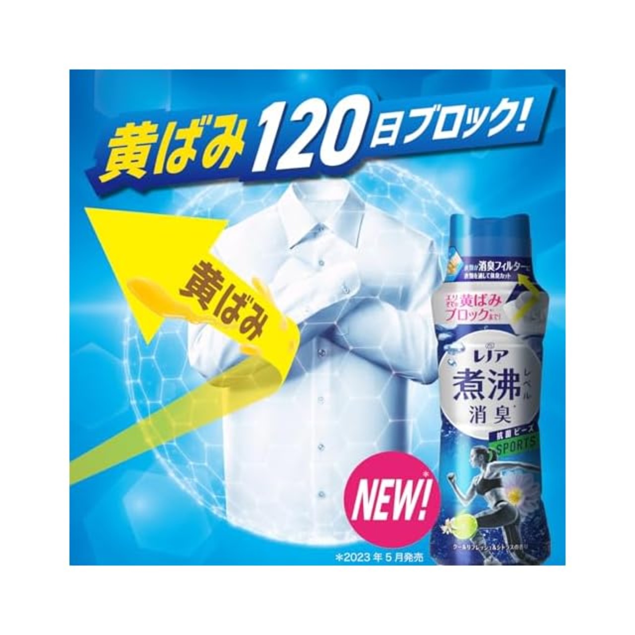 抗菌ビーズなら、洗濯した衣類がまるで「消臭フィルター」に!着用中に服を通して汗臭・体臭をカットするから、汗をかいた後も外にニオイが広がらない!