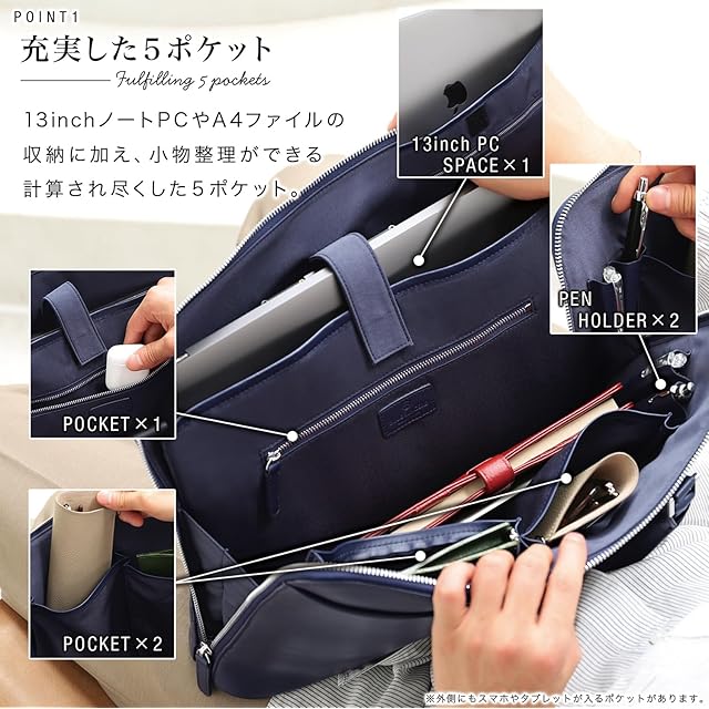 ✅【 細部までの徹底したこだわり 】 内装には、2つの小物フリーポケットとファスナー付きポケットを採用。クッションを施したパソコン専用ポケットもついています。薄いながらも広々としたメインポケットは様々な物を収納することができます。ファスナーは滑らかな高級ファスナーを採用、さらにダブルファスナー仕様で右利きの方だけでなく左利きの方でも毎日の使い勝手は抜群です。また、バッグの内側素材を明るめにしたので、内容物を探すのがストレスフリーです。出張などの際のキャリーケースに差し込んで安定するように専用のキャリーケースバンドも活用していただくと便利です。