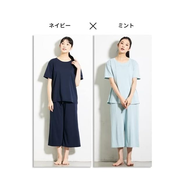 [ニッセン] パジャマ・ルームウェアセット こだわりのゆったりシルエット綿混シンプルルームウェア2セット組 ネイビー+ミント 10L