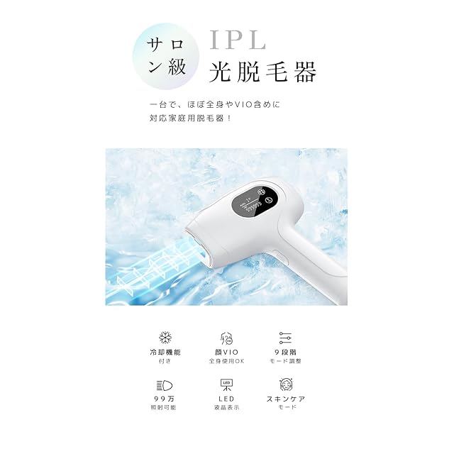 脱毛器 冷感脱毛器 IPL光脱毛器 無痛脱毛 光エステ 光美容器 9段階調節 99万回照射 VIO対応 自動/手動照射モード 連続照射 肌色検出モード 無痛 軽量 男女兼用 メンズ レディース 全身ムダ毛処理 家庭用 日本語説明書付き プレゼント