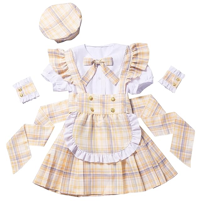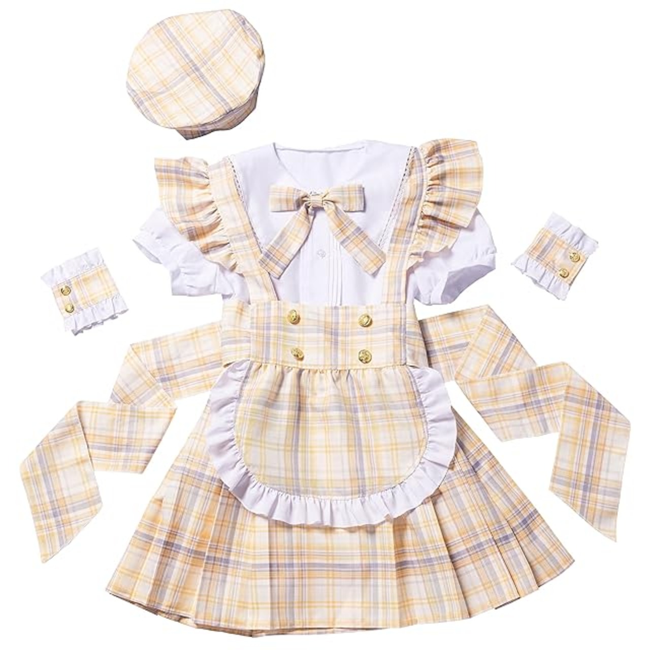 セット内容:ベレー帽、ワンピース、エプロン、リボン、カフス