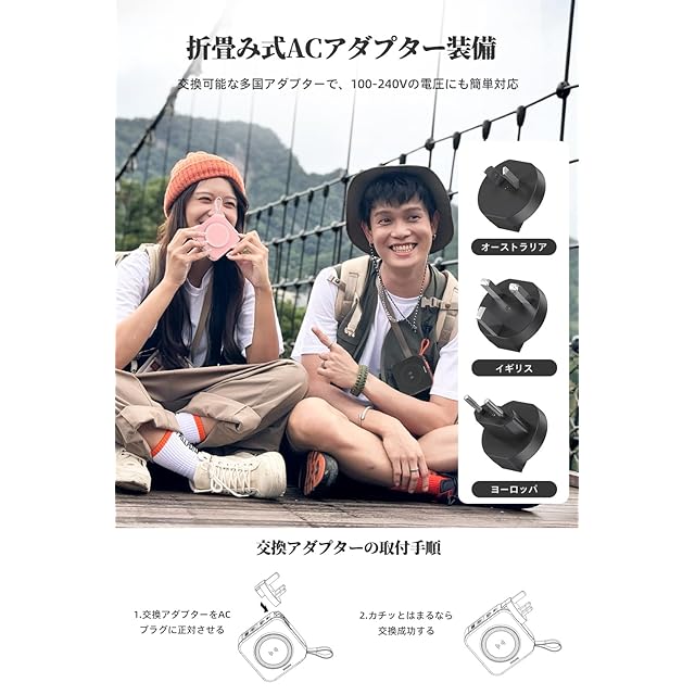 【便利なデザイン&全世界で使用可能】 実用的なデザインで、より便利で素早く使用できます。バッテリー残量、急速充電、ワイヤレス充電の状態をリアルタイムに表示するLCDディスプレイ付きであります。 LightningとUSB-Cケーブルを内蔵し、他のデバイスを充電できます。持ち運びに便利なストラップと、スマホを縦置き・横置きにできる隠しスタンドが付属し、あらゆるビデオ通話シーンで負担をかけずに使用できます。さらに、オーストラリア、イギリス、ヨーロッパ規格の電源変換プラグが付属しており、海外旅行にも安心です。※ご注意:ACおよびUSB-C入力で、複数のポートから同時に出力でき、合計出力は10Wです。