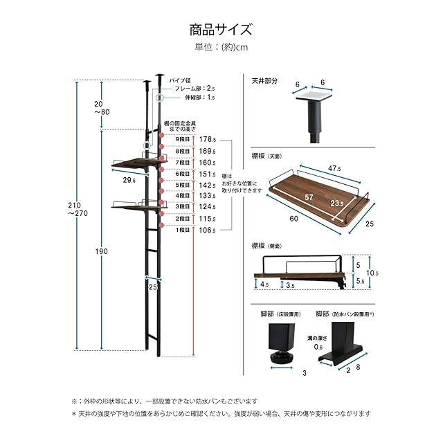 サイズ:(約)幅60x奥行29.5x高さ210-270cm