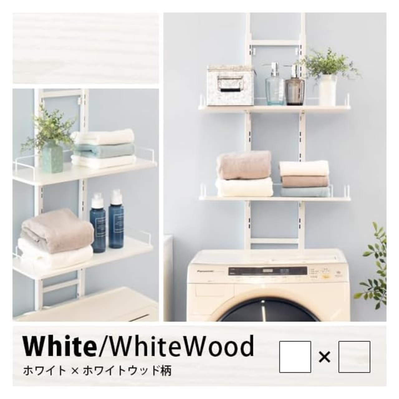 ekans(エカンズ) 棚付きランドリーラック 棚2段 突っ張りタイプ LSH-T200WA (ホワイト×ホワイトウッド)