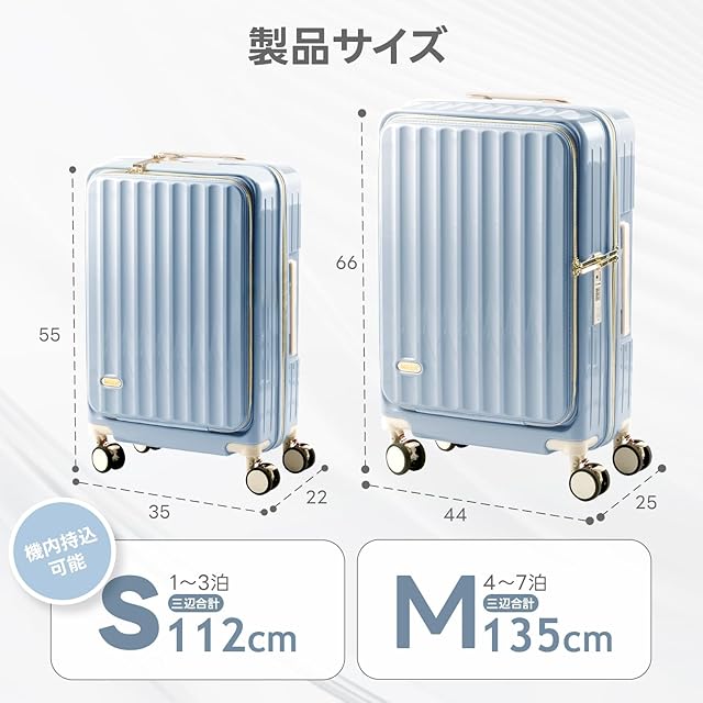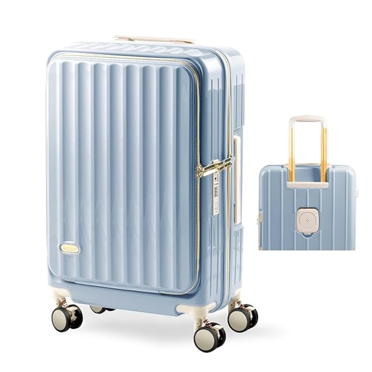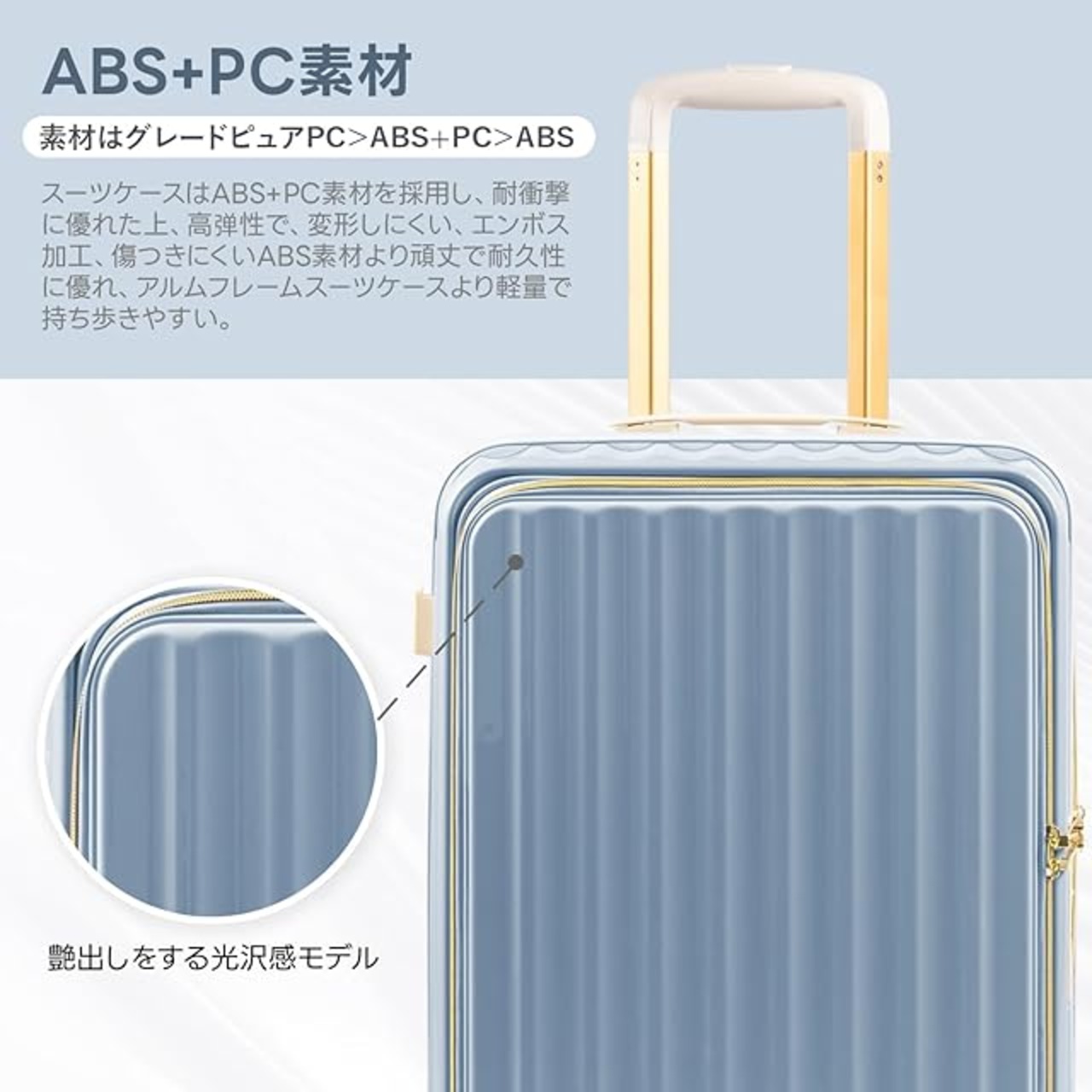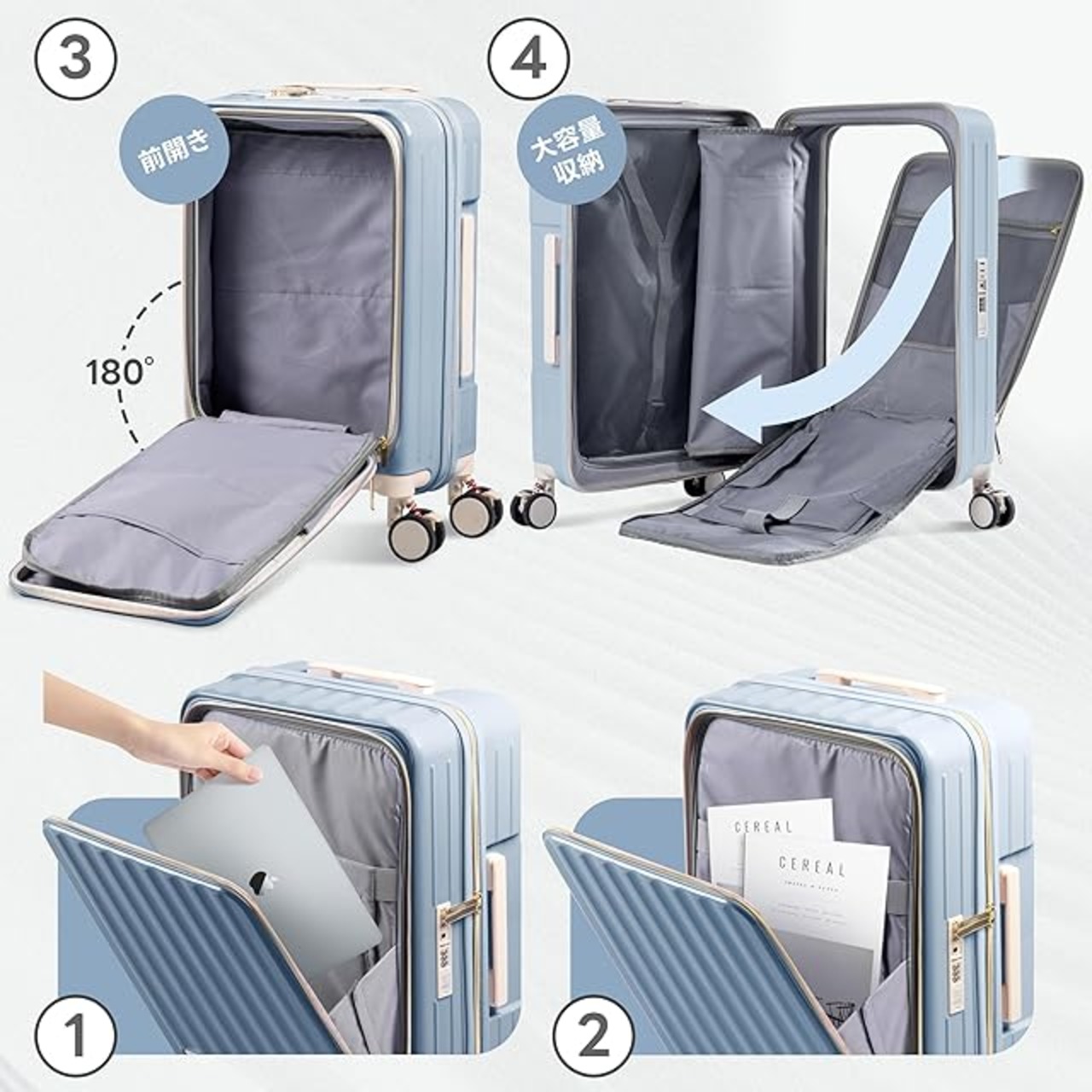 [JOLISTAR] スーツケース キャリーケース キャリーバッグ 前開き フロントオープン 光沢感 機内持込 ABS+PC 耐衝撃 大容量 大型 超軽量 静音 USBポート カップホルダー 荷物フック ダブルキャスター ストッパー付き 360度回転 ブレーキ機能 スマホスタンド TSAローク ファスナータイプ 人気 おしゃれ 旅行 ビジネス 出張 修学 泊まる 入院 (ブルー, S)