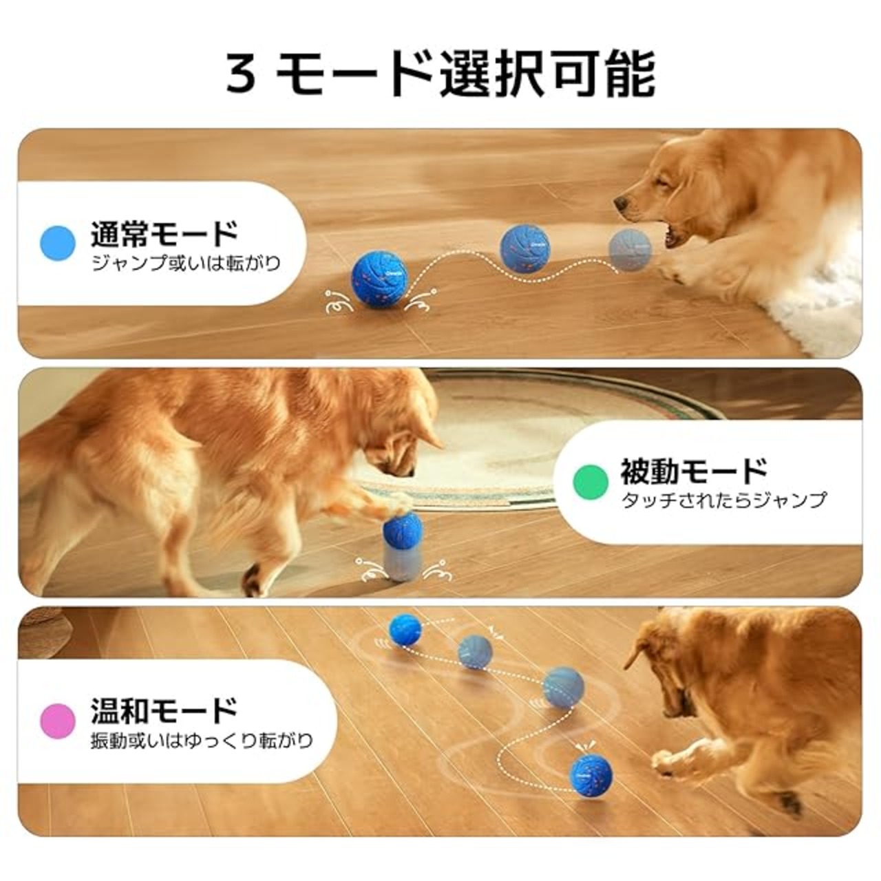【3モードで犬が興味津々に】自動犬ボールがランダムな動き、揺れ、バウンドすることで、愛犬の好奇心を掻き立ててくれし、遊び欲求を満たすことができだけじゃなく、ストレスも解消されます。あっちこっちと犬ボールには愛犬にとって、飼い主さんと一緒に遊んでも、ひとり寂しいお留守番でも退屈せず、びっくり楽しいてあげることができるでしょう。また、通常モード,被動モード,温和モードの3つのインタラクティブモードが搭載されて、犬の性格と遊び方に合わせて切り替えることができます。