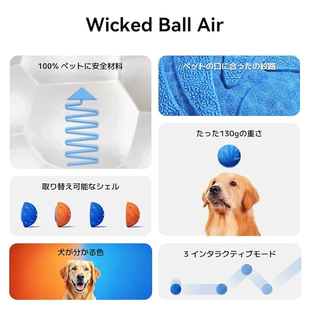 Cheerble 犬ボール 自動 犬おもちゃ 3モード 交換可能シェル E-TPU素材 環境に優しい Type-C充電式 130gの超軽量設計 全新体験 ストレス解消 運動不足対策 (Air ブルー)