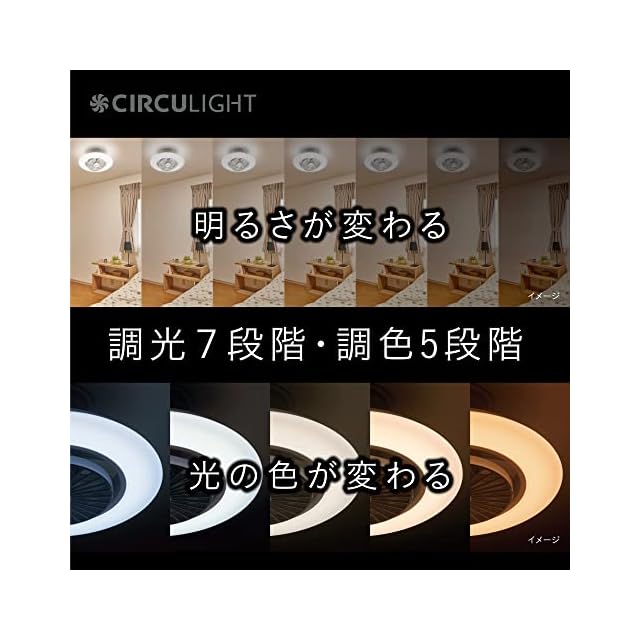 調光:7段階、調色:5段階、ふんわりと消灯、おやすみタイマー(30分・60分)明るさ:約3600lm(電球色~昼光色100%点灯時)自動スイングモデル