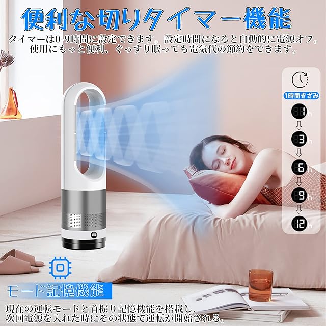 タワーファン 羽なし扇風機 スリム リビング扇風機 DCモーター48w省エネ 節電 8段階冷風&3段階暖風 自動100°首振り 9H切りタイマー セラミックヒーター セラミックファンヒーター 電気温風機 暖房器具 タワーファン 扇風機 羽根なし扇風機 スリムタワー サーキュレーター 切り忘れ防止 強力送風 大風量 リモコン付 冷暖房 セラミックファンヒーター 過熱保護 転倒自動オフ お手入れ簡単 オフィス/脱衣所/寝室 PSE認証済 日本語説明書