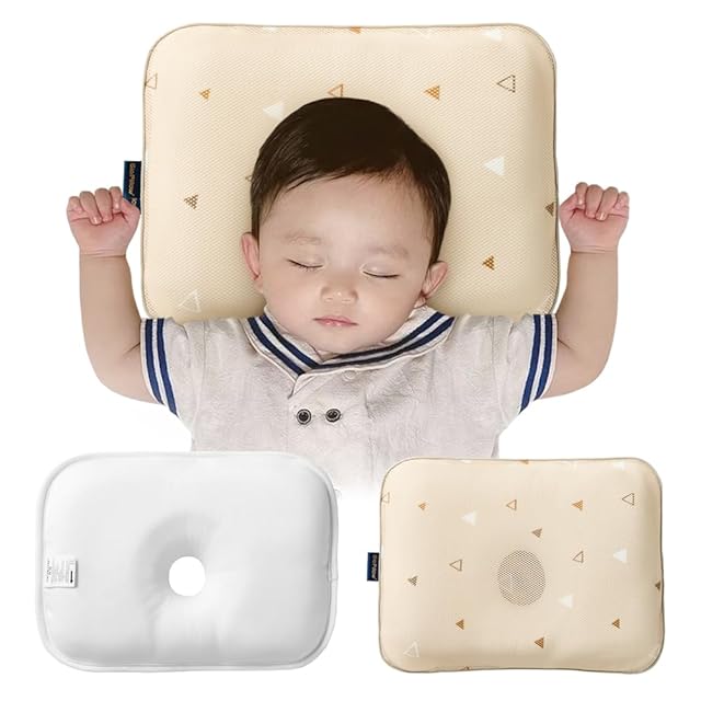 Gio Pillow ジオピロー ベビー枕 赤ちゃん 枕 絶壁頭予防枕 ドーナツ枕 出産祝い 出産準備 新生児 絶壁防止枕 まくら 絶壁防止 ベビーまくら メッシュ (M, トライアングルベージュ)