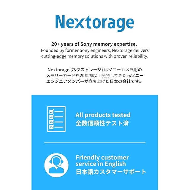 Nextorage (ネクストレージ) はソニーカメラ用メモリーカードを20年間以上開発してきた元ソニーエンジニア達が立ち上げた会社です。