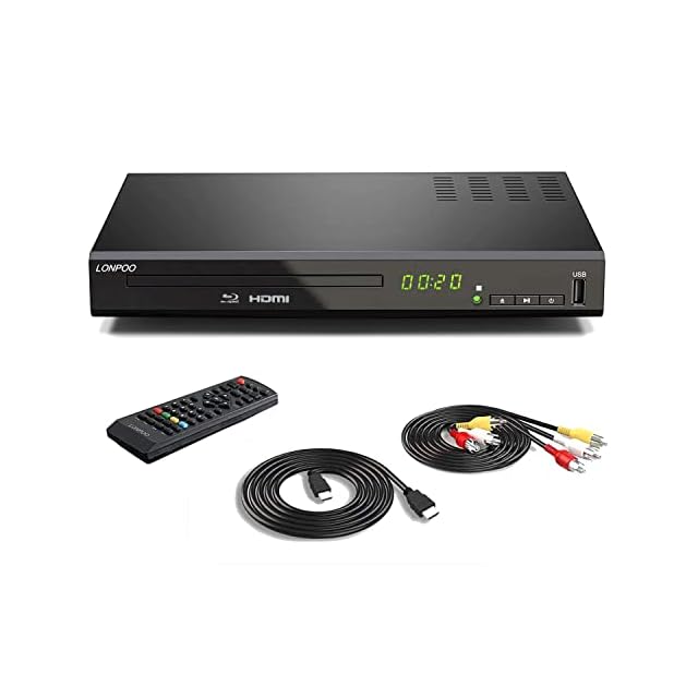 LONPOO DVD ブルーレイプレーヤー フルHD1080p DVDプレーヤー CPRM再生可能 HDMI/同軸/AV出力 高速起動 PAL/NTSC対応 USB/外付けHDD対応 Blu-rayリージョンA/1 AV/HDMIケーブル付き