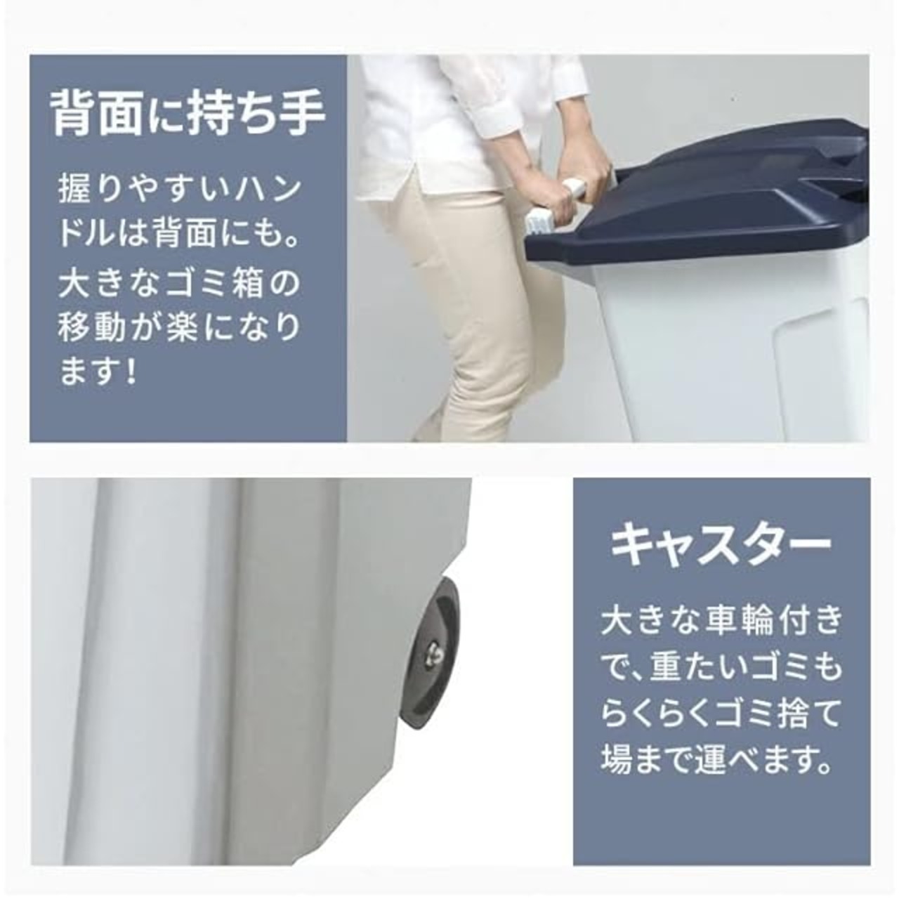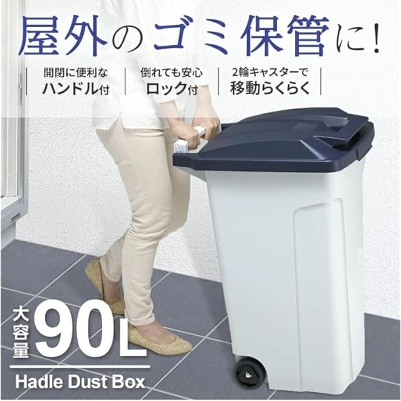 アスベル ゴミ箱 日本製 屋外 フタ付 ロック付き キャスター付き ハンドル付分別ダストボックス90L ブルー 幅44.0×奥行56.0×高さ79.5cm