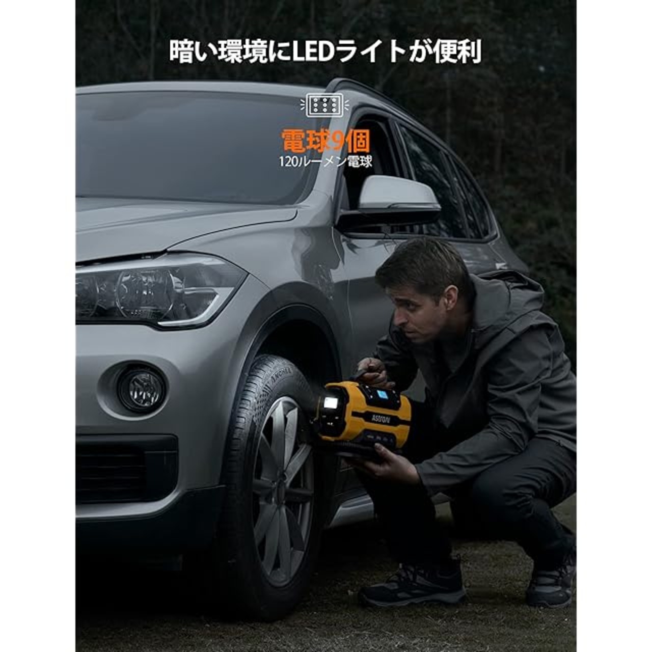 【2種類の電源】AstroAIエアコンプレッサーはデュアル電源、自動車の12Vシガーライターと120Vの家庭電源対応、家庭とドライブの使用時の便利さが特徴的です。