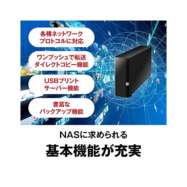 【特長】初めてのNASに最適。PC、スマホ、タブレットでいつでもどこでもデータにアクセス!