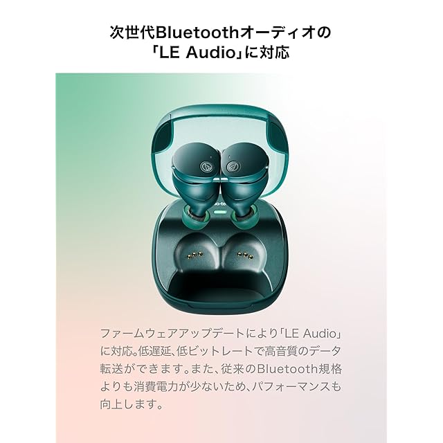 技適マーク認証済み商品(周波数帯:2.4G帯) 圧巻の重低音を堪能できる、φ9mm SOLID BASS HD TWSドライバー:完全ワイヤレスで重要な装着感を追求しながら、圧巻の重低音を再生する大口径ドライバーを搭載。高い密閉性により低音を逃さず、また、高精度なハイブリッドノイズキャンセリング機能を掛け合わせることで、大好きな音楽を心ゆくまで堪能することができます。ファームウェアアップデートでLE Audioに対応。