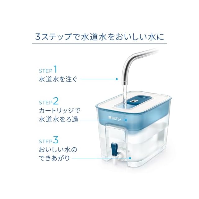 ブリタの浄水器を1年間使用すると約3万円おトク *1日あたりペットボトルを1本(2L)、1年間で365本(730L)の水を利用した場合。 【ブリタのカートリッジ】カートリッジの1Lあたりのコスト:11円×730L=8,030円 【ペットボトル】2Lペットボトルの価格:101円×365日=36,865円 小売物価統計調査(動向編)より(東京都区部小売価格、2022年1月〜2022年12月平均価格) ・上記はすべて税抜価格を前提に算出しました (2024年3月時点)