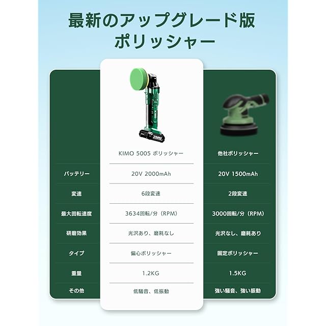 【優れたアフターサポート】KIMO 充電式ポリッシャーの出荷前に、一つひとつの商品に品質検査を行い、基準をクリアした商品のみを出荷しております。万が一、商品に問題があった場合や商品についてご不明な点がございましたら、当店までお気軽にお問い合わせください。また、メールでお問い合わせをされた場合は、お問い合わせの順番通りに返信させて頂きます。何卒、ご了承くださいませ。