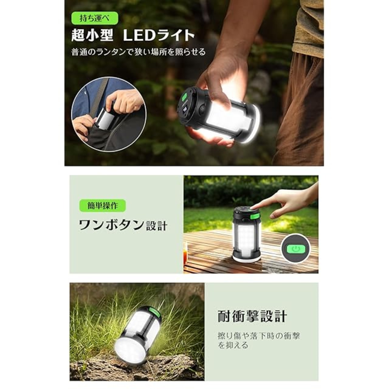 ☀【一台多役 モバイルバッテリー機能付き】アウトドアランタン、懐中電灯、日常の作業灯、非常ライト以外にも、スマホへ充電などさまざまなニーズを満たして、使い勝手抜群なアウトドアランタンです。USB-A出力ポートを経由してスマホやタブレットなどのUSB機器にも充電でき、緊急予備電源として利用可能。電池残量がディスプレイ画面に表示され、充電のタイミングが分かりやすいです。ワンボタンを押しすることにより簡単に明るさやモードの切替ができ、初めての方でも迷わずに使用できます。