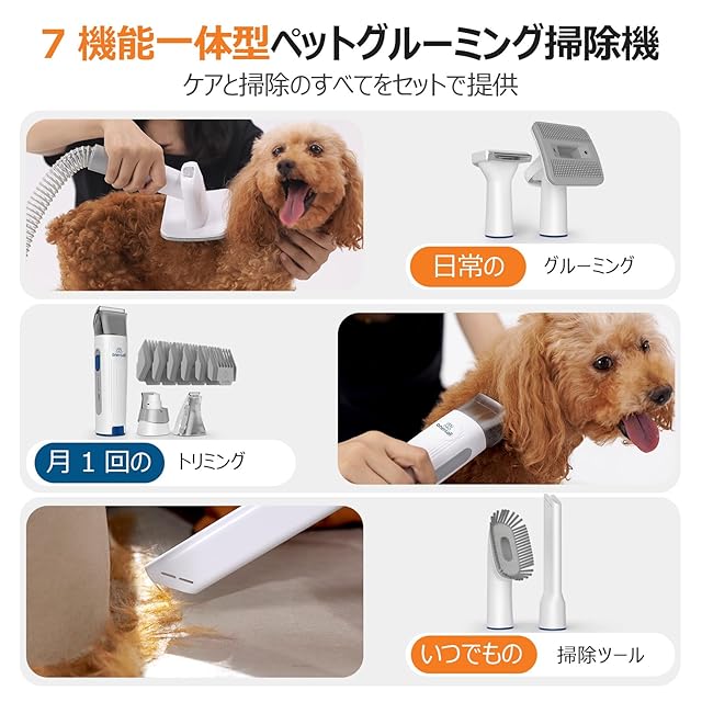 【ブラシと掃除機一体型】Oneisall ペット用バリカン 犬 猫美容器 7 in 1 多機能ペット掃除機 ペットグルーミングセット 電動バリカン ヘアクリッパーやヘアブラシも含む ペット用品 ペットの抜け毛対策 | primer