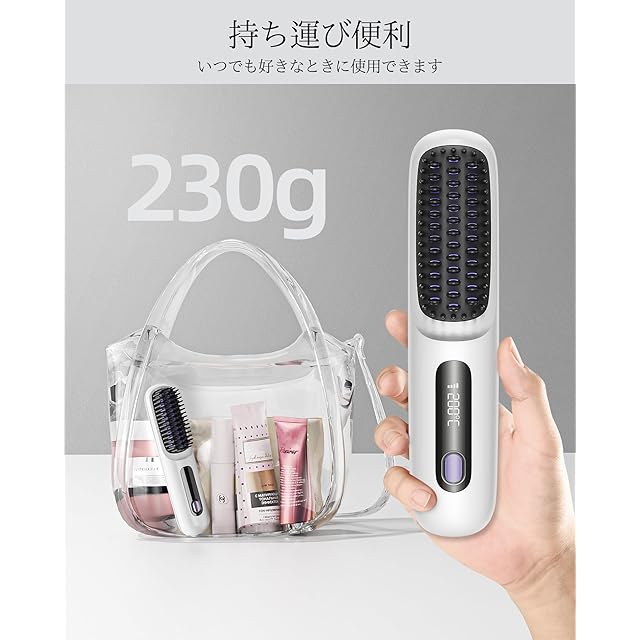 ヒートブラシ コードレス ブラシアイロン ストレート マイナスイオン 静電気防止 デジタル表示 Type-C充電式 160~200℃ USB充電式 3段階温度調整 セラミックコーティング 簡単ストレート 前髪 急速加熱 軽量 持ち運び 火傷防止ヘアケア 日本語取扱説明書付き お誕生日 プレゼント 男女兼用 | primer