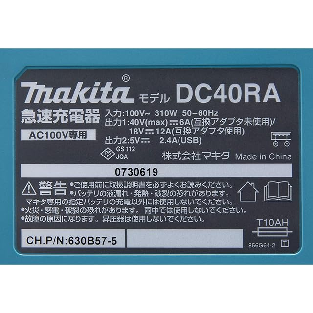 マキタLi-ionバッテリ専用。40Vmaxシリーズ急速充電器