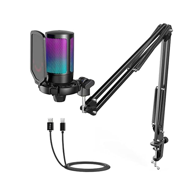 [箱から出してすぐに使用可能] プラグアンドプレイのゲーミングマイクセットは、追加のプラグインや複雑なデバイス設定手順を必要としません。PC用のUSBゲーマーマイクは、Windows、Mac OS、Mac / PS4 / PS5と互換性があります。ストリーミングマイクの端はリバーシブルタイプCインターフェイスで、薄暗いゲームの雰囲気でも正しい方法で差し込むのに問題はありません。8.3フィート(2.5m)のUSBケーブルは、ホストの後ろからデスクトップまで伸ばすのに十分な長さで、クリアなオーディオのゲーム歌録音が可能です。