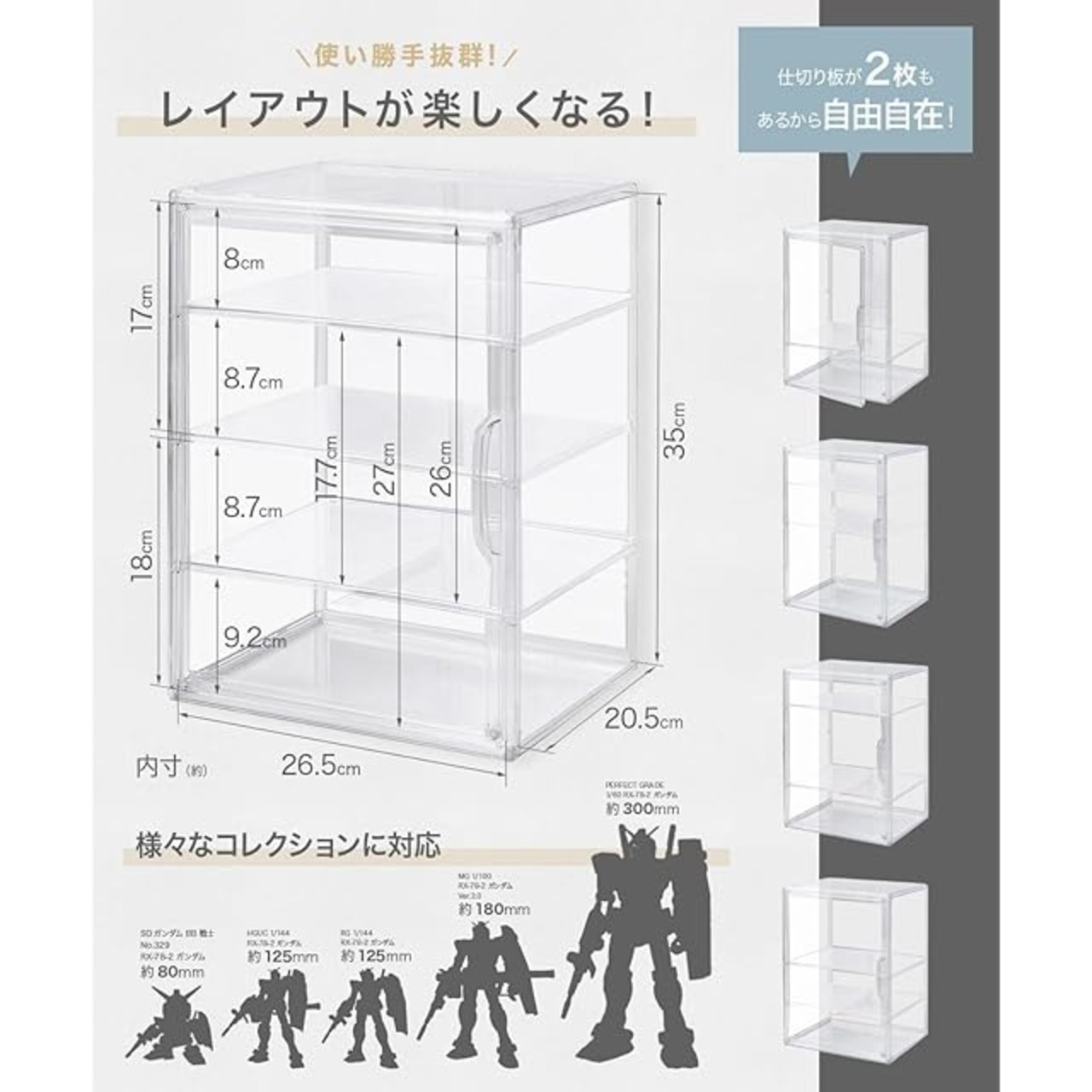 ✅【レイアウト自由】3段 階 の 高さ 調整が可能。仕切り板 が2枚付いているから、様々なフィギュア や コレクション ガンプラ に対応しています。抜群の使い勝手です。