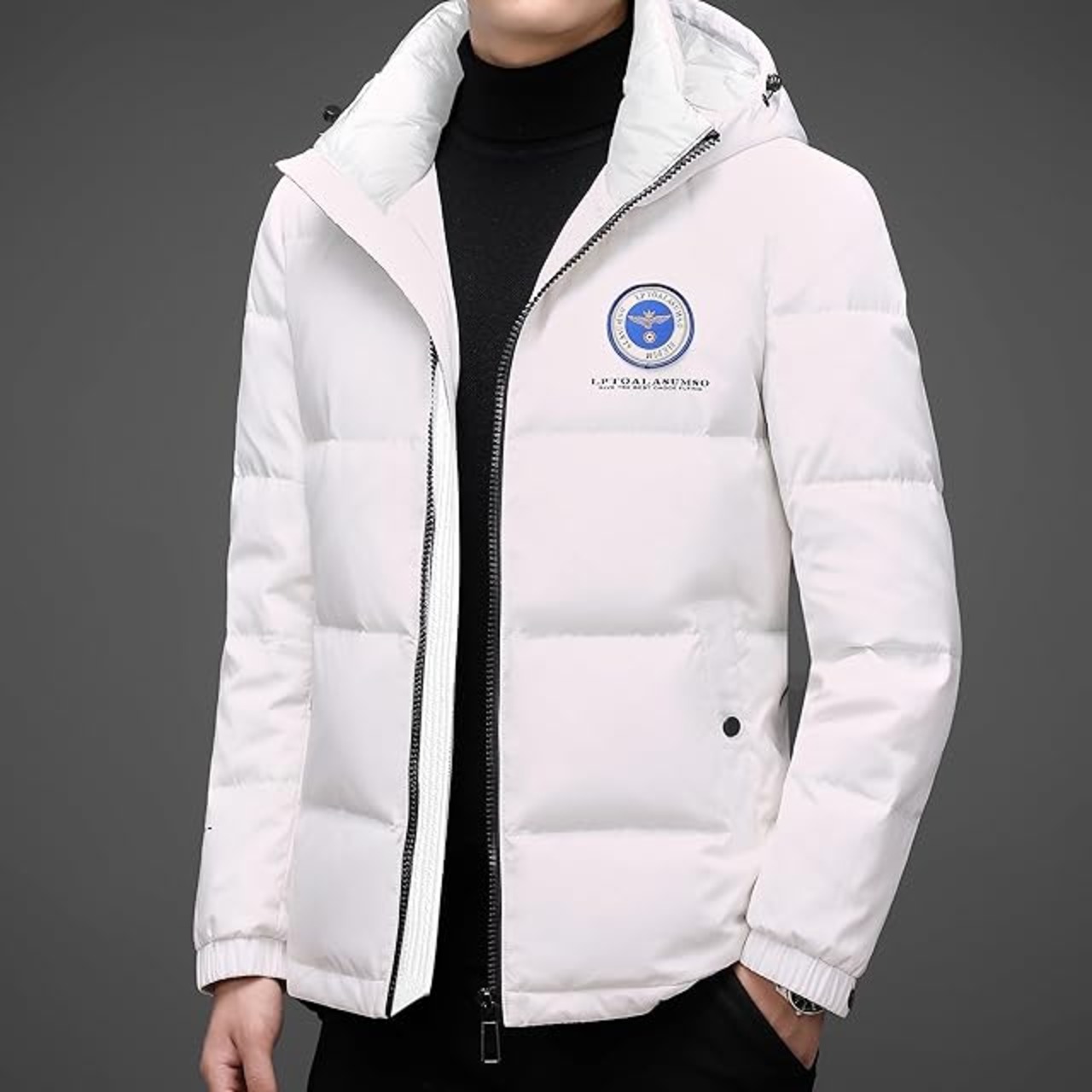 [向上させた機能]裏に暖かくて良いダウンを使用しており、体を包み込むような柔らかな着用感が温性に優れ、春秋冬の季節に暖かいダウンジャケットとなりました。表地は撥水加工で、優れた防風性だけでなく、防寒性も良い。ハイネック&フード付きなので、首元から熱の放出を抑えて、雪でも小雨でも楽に使えます。