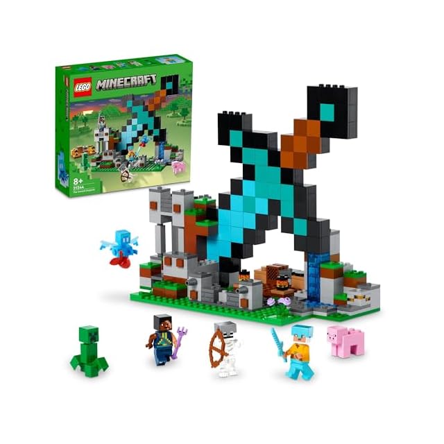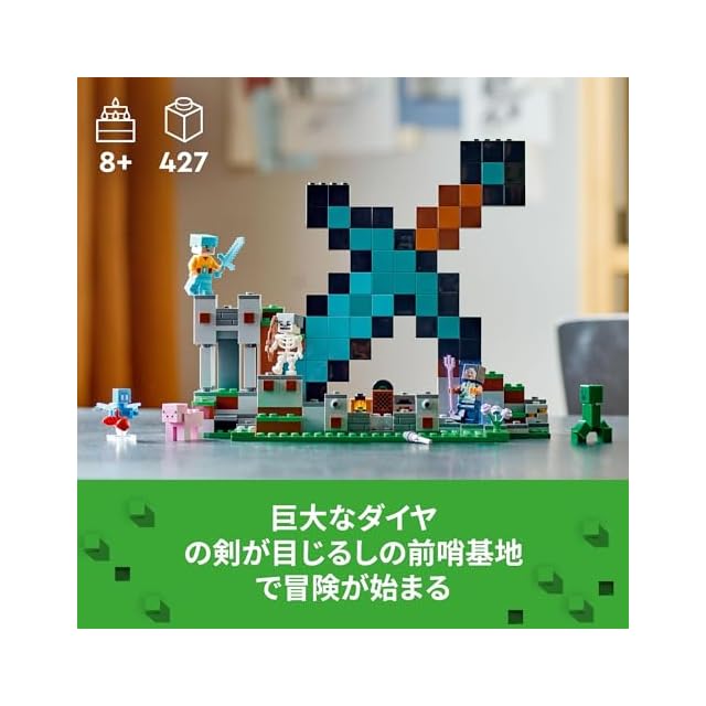 ダイヤの剣 – レゴマインクラフト ダイヤモンドの剣の基地(21244)は、ゲームの中に登場するアイテムからひらめきを得た冒険ごっこが楽しめます。