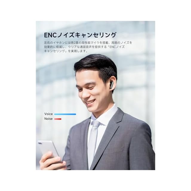 【圧倒的な音質体験】10mm径ウール複合ダイナミックドライバーダイナミックドライバーを搭載し、精緻でバランスの取れた音を楽しめます。クリアなボーカル、力強い低音、伸びやかな高 音がほどよく調和し、奥行きのあるサウンドステージを実現します。【ENC通話ノイズキャンセリング】高感度マイクを左右のイヤホンに各2基/計4基搭載、ENCノイズキャンセリングにより周囲の雑音を取り除いたクリアな通話を実現します。自動車の走行音や風の音など、90%以上の環境音を排除することができます。