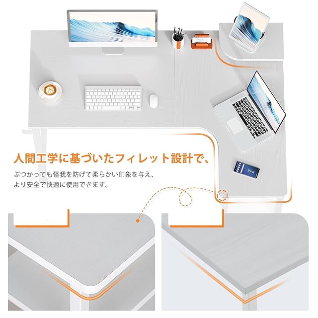 【組立簡単&耐久性高い】分かりやすい説明書あり、女性にも組立簡単です。汚れに強く、高強度のメラミン化粧板を採用し、キズや熱・水分に強く、長持ちしやすいコーナーデスクです。机の天板はフィレット設計で、安全性が高く、衝撃時に怪我を防げます。