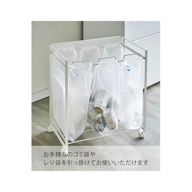 山崎実業(Yamazaki) 目隠し分別ダストワゴン 3分別 ホワイト 約W51.5XD32XH55cm タワー ゴミ箱 ハンドル・キャスター付 簡単に取り出せる フタなしゴミ箱 4332 | primer