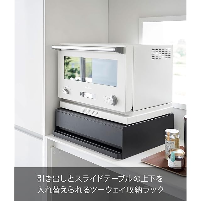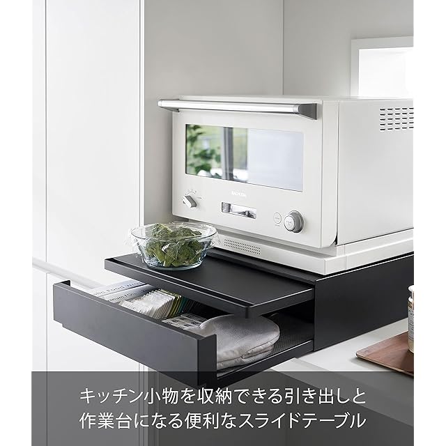 山崎実業(Yamazaki) 【 完成品 ストッパーのみ要取付 】 ツーウェイ キッチン 家電下引き出し & スライドテーブル ブラック 約W45×D39.3~64×H13.5cm タワー tower スライド棚付き 小物収納 ちょい置きできる 作業スペース 2008 | primer
