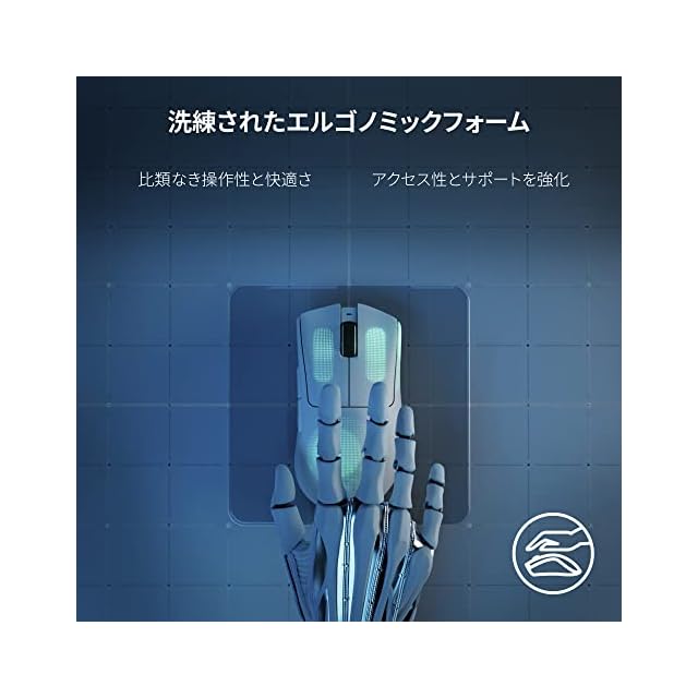 【63gの超軽量デザイン】前モデルのRazer DeathAdder V2 Pro よりも25%以上軽量化。表面に穴をあける事無く極限まで最適化された本体重量は確かな剛性と共に、64g以下の軽量化を達成。正確かつ、高速なマウス操作を実現可能な本体設計となっています。