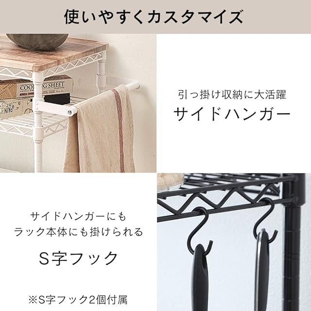 主要材質/木天板:スチール(粉体塗装)、合成樹脂化粧繊維板(PVC)/棚板・ポール・コの字バー・サイドハンガー・S字フック:スチール(粉体塗装)/棚板固定部品:ASB樹脂/アジャスター:スチール、ナイロン樹脂