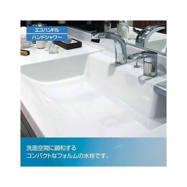 【エコハンドルで省エネ】正面のハンドル位置で「水」を出す省エネ設計。お湯が混合する位置はクリックでお知らせするため、無意識に給湯エネルギーを使用することを防ぎます。従来品と比較して約20%節水、約27%(当社比)の省エネ効果が期待でき、光熱費節約やCO2削減につながります。