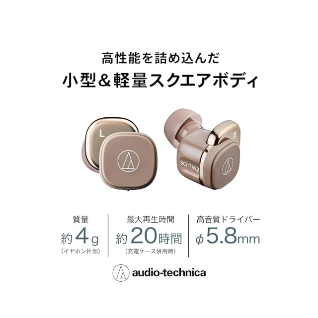 オーディオテクニカ ATH-SQ1TW2 CA ワイヤレスイヤホン bluetooth 小型 軽量 / 最大20時間再生 / 低遅延/外音取込み/マルチポイント/マルチペアリング/防水 IPX5 / ワイヤレス充電 /【国内正規品】カフェラテ ATH-SQ1TW2 CA | primer