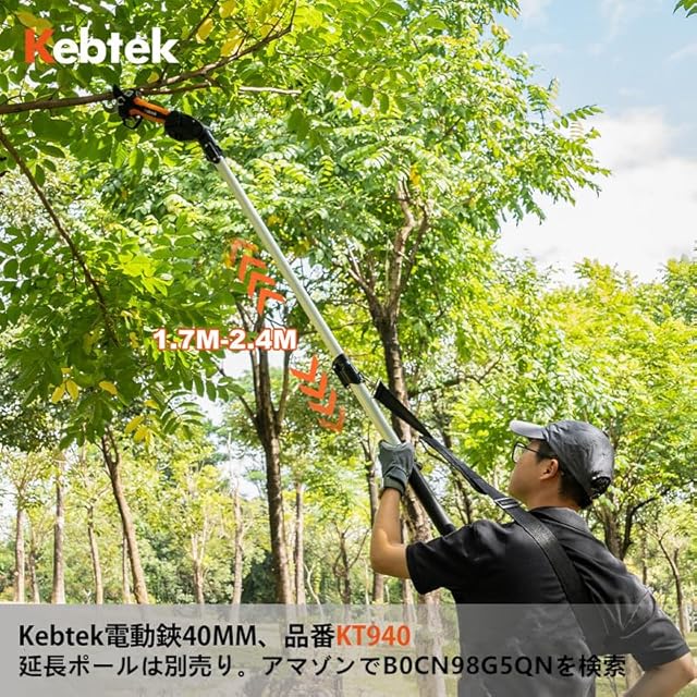 【Kebtek互換3兄弟、パワフル】:電動剪定鋏KT940、KT E35とKT 933はポール、バッテリー、充電器互換できます。お客様の保管空間と負担を減らします。Kebtekの充電式剪定鋏には全部ブラシレスモーターを採用しています。負荷が掛かった時に、抵抗が感じるではなく、さらにもう一押しするような感じがあります。庭木の剪定、造園作業、伐採や刈り枝の処理には抜群の作業能力で欠かせなくなります。腕、肩への負荷が小さく、園芸作業を楽にします。
