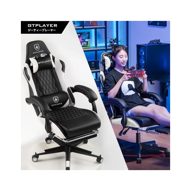 GTRacing (ジーティーレーシング) ゲーミングチェア 白 デスク pcチェア 椅子 テレワーク 145°リクライニング オットマン付き ゲームチェア ハイバック ランバーサポート ポケットコイルが内蔵 PUレザー GTPlayerシリーズGTP900-WHITE | primer