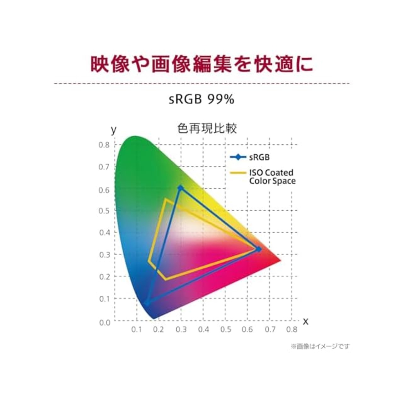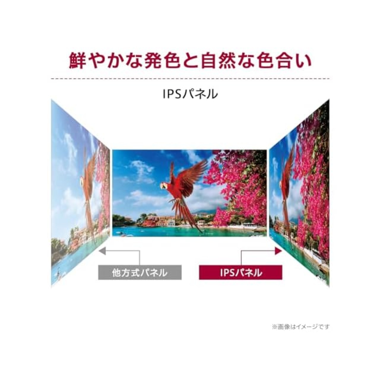 【発色が鮮やかで自然な色合い】 IPSパネル 写真家やグラフィックデザイナーなど、多くの画像や映像の専門家が好んで使用するとされるIPSパネル。どの角度から見ても色変化が少なく、発色が鮮やかで自然な色合いを表示できます。