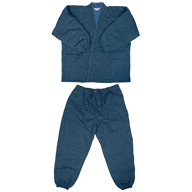 [キョウエツ] 作務衣 冬用 中綿入り 紬風生地 フリース裏地 16 メンズ (M, 花紺)