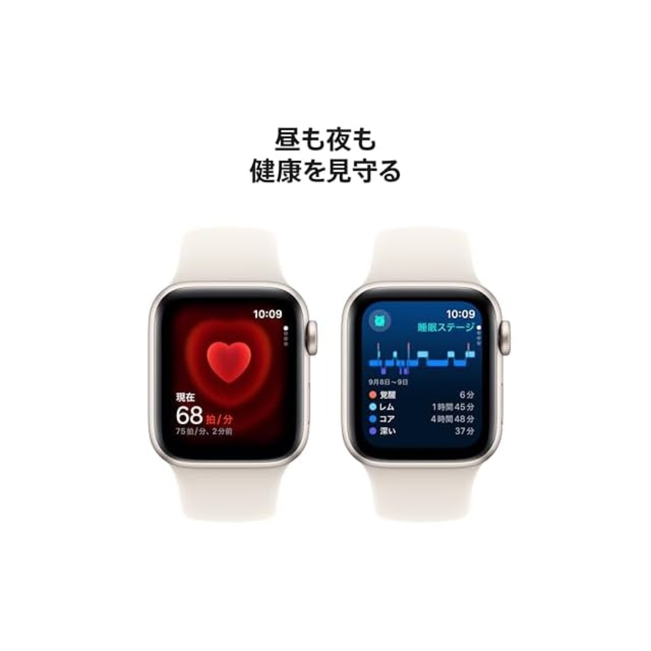 Apple Watch SE(第 2 世代)[GPS モデル、40mm ケース]スターライトアルミニウムケースとスターライトスポーツバンド - S/Mを組み合わせたスマートウォッチ。フィットネストラッカーと睡眠トラッカー、 衝突事故検出、心拍数のモニタリング、Retina ディスプレイ、耐水性能