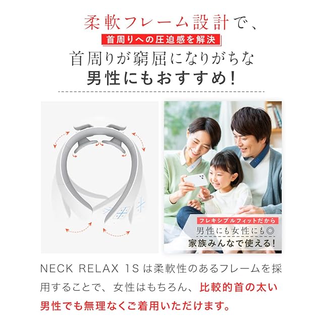【首・肩・背中の広範囲へ】 6枚のパッドが6カ所の接触点となり、幅広く肩や首の違和感の元になるトリガーポイントを攻め込みます。強さレベルを調整することにより、範囲も調整できます。*首と肩下に当たるパッド部分は取り外し可能になっており、気分に合わせてご使用いただけます。柔軟フレーム設計で、首周りが窮屈になりがちな男性にもおすすめ!