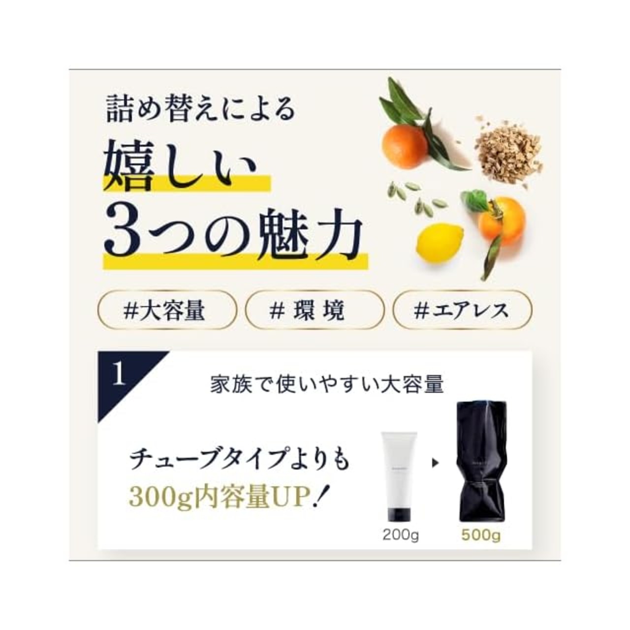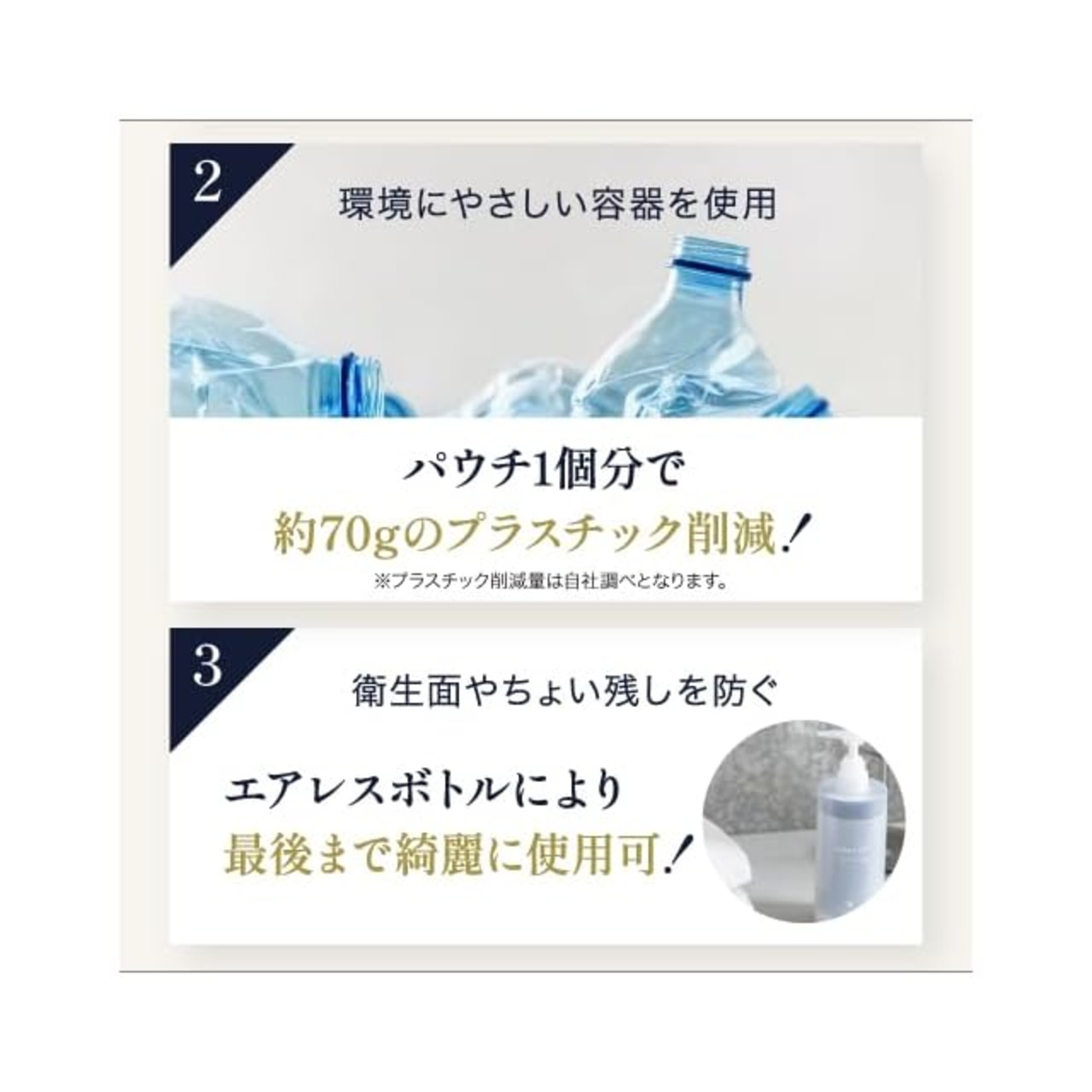 ※ジェルクレンジングの500g詰め替え用です。初めてご購入される方は専用ボトルと一緒にご購入されることを推奨します。 ■人気No.1のおすすめクレンジング ■使用方法:適量を手にとり、両手で挟んでクレンジングを温める。 額・両頬・鼻・顎に置き優しく円を描きながら肌になじませる。 クレンジングが毛穴の汚れや皮脂と混ざって白っぽく濁ってきたら、ぬるま湯か水で 優しく洗い流す。※肌質によって、乳化しない場合があります。 ■主要な成分とその役割 ・コラーゲン発酵液エキス(うるおい作用、保湿) ・乳酸桿菌/ブドウ果汁発酵液(ターンオーバーをサポート、弾力・ハリ、保湿) ・乳酸桿菌/セイヨウナシ果汁発酵液(ターンオーバーをサポート、弾力・ハリ、保湿) サッカロミセス/(黒砂糖/プラセンタエキス)発酵液(ターンオーバーをサポート、乾燥によるくすみケア 、肌あれを防ぐ、肌保護) ・サリックスニグラ樹皮エキス(マイルドピーリング) ・オリーブ油PEG-7エステルズ(メイク落とし)