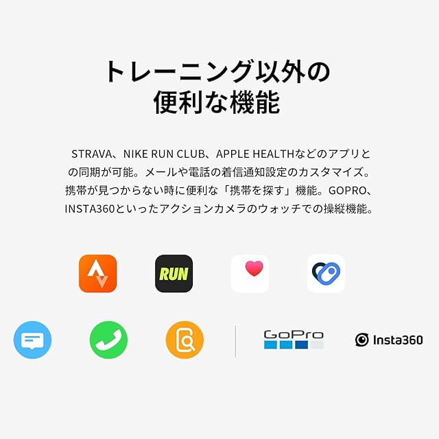 【正確な記録と分析】① 次世代のGPS技術再設計された二周波数衛星チップを追加したことにより、東京やニューヨークのような高層ビル群が立ち並ぶ大都市においても、GPSデータをより正確に受信できます。② 高精度の心拍測定睡眠データの測定、トレーニング時の強度など、PACE 3に搭載されている次世代光学式心拍センサーは、5つのLEDライトと4つの光検出器で手首から得られる高精度のデータを提供します。