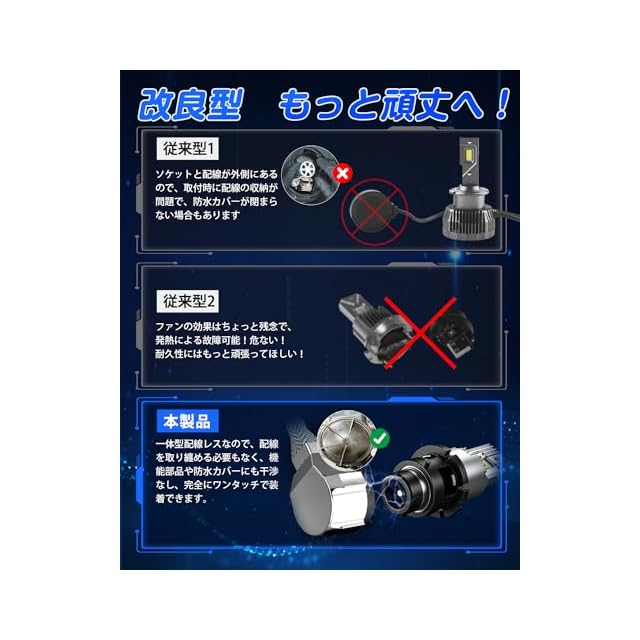 【業界最新アップグレード版】D4S LED ヘッドライトを交換すると、後ろ部分が大きくて、防塵カバーを交換してしないといけません?HIDをLED化にしたいが、LEDのカッドラインが暗区あり、車検は全然ダメ?SUPAREE社の D4S LED は完全純正HIDサイズを再現して、もとはD4S HIDの車種はスムーズに取付できます、汗臭な工事を不要!便利になりました!業界最新版のライトパネルの部分は旧型より少し幅広に作られてて、また、ファンの部分も改良し、高温による電球の故障や球切れの心配はない!HIDの発光点と拡散角度を参考して、完全にHIDの発光原理を再現、従来品ようなの暗区を完全に消滅しました!
