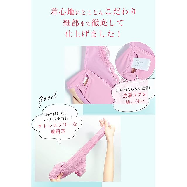 【一晩中快適な着心地】締め付けないストレッチ素材でストレスフリーな着用感!肌に当たらない位置に洗濯タグを縫い付けることで、快適な着心地で理想のバストへ導きます。